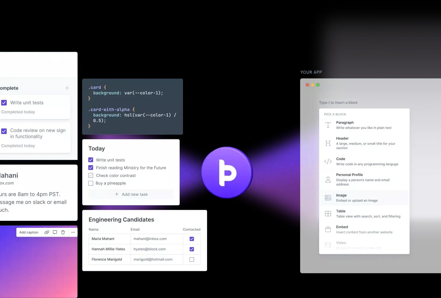Once the Þ is supported, blocks work out the box, and your users get access to powerful blocks that enable them to do more within your application.
